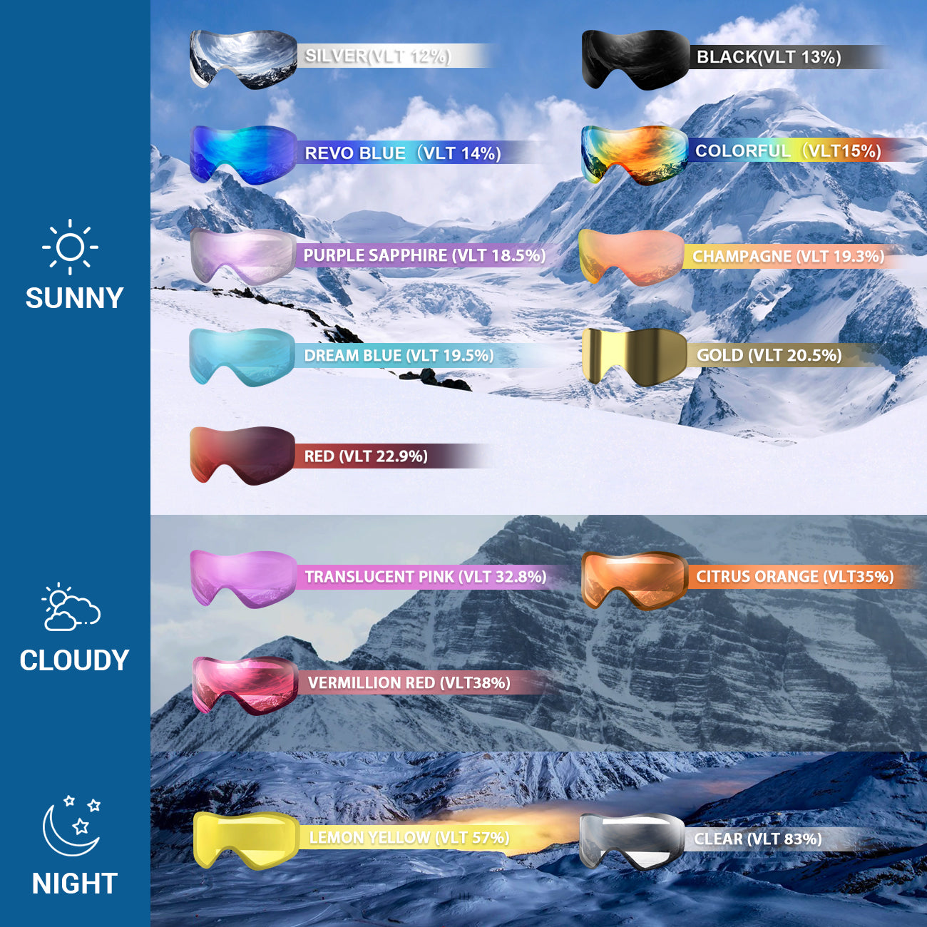 FULL PROTECTION FOR EYES– All JULI lenses block 100% harmful UVA/UVB rays, so you can spend all day on the slopes without worrying about the harmful effects of the sun or compromised visibility.