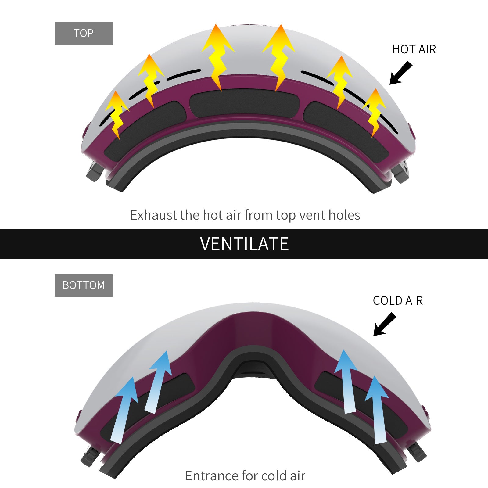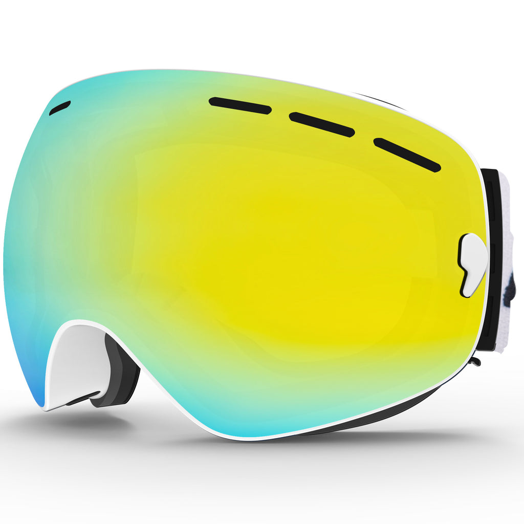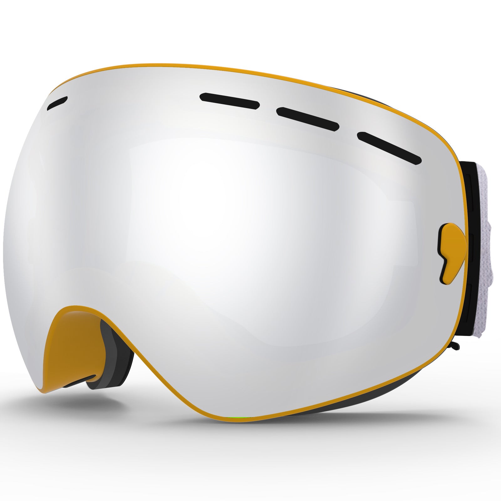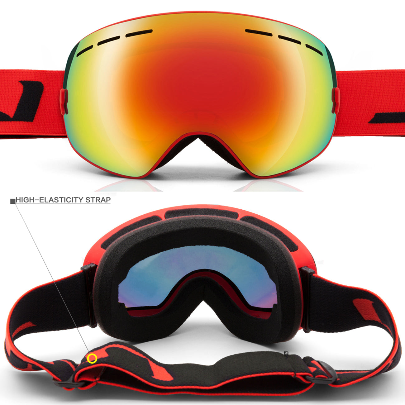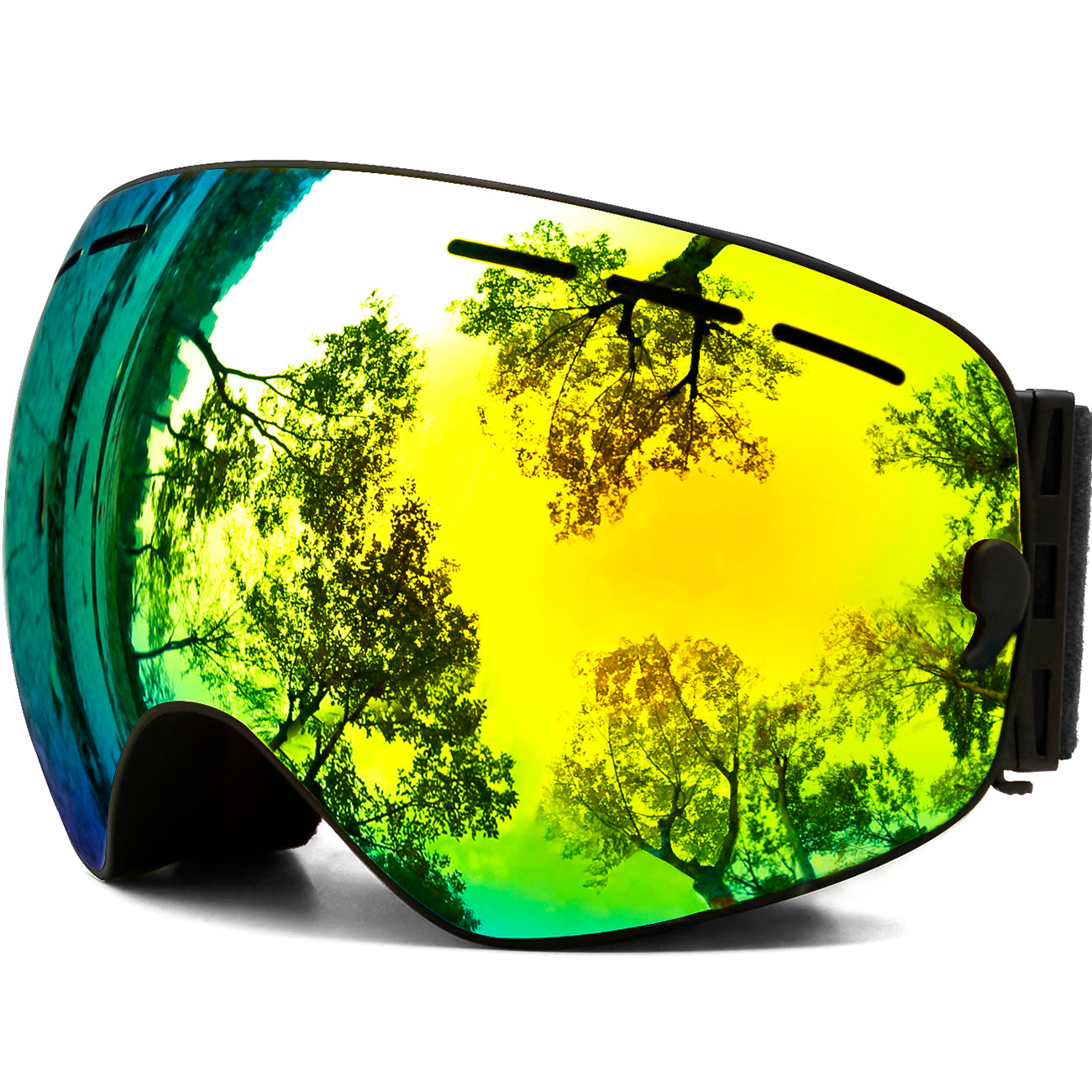 PROFESSIONAL VENTILATION & FRAMELESS DESIGN-Designed to reduce fogging and optimizes the flowing air over the inside of the lens. ski goggles provide smooth air-flow system which brings fresh air and exhaust moisture quickly and effectively. The big, spherical, frameless lens provides a truly unobstructed & clear view of the slopes.