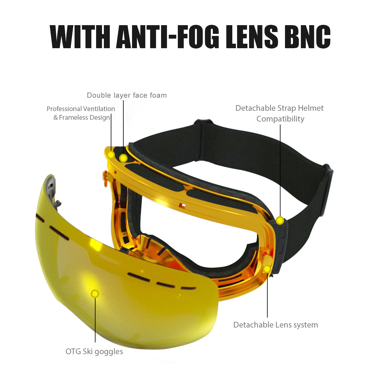 DETACHABLE LENS SYSTEM-The detachable lens system offers spare lenses with different colors, VLTs suitable for different weather conditions and personal preference when skiing, snowboarding or other winter sports.